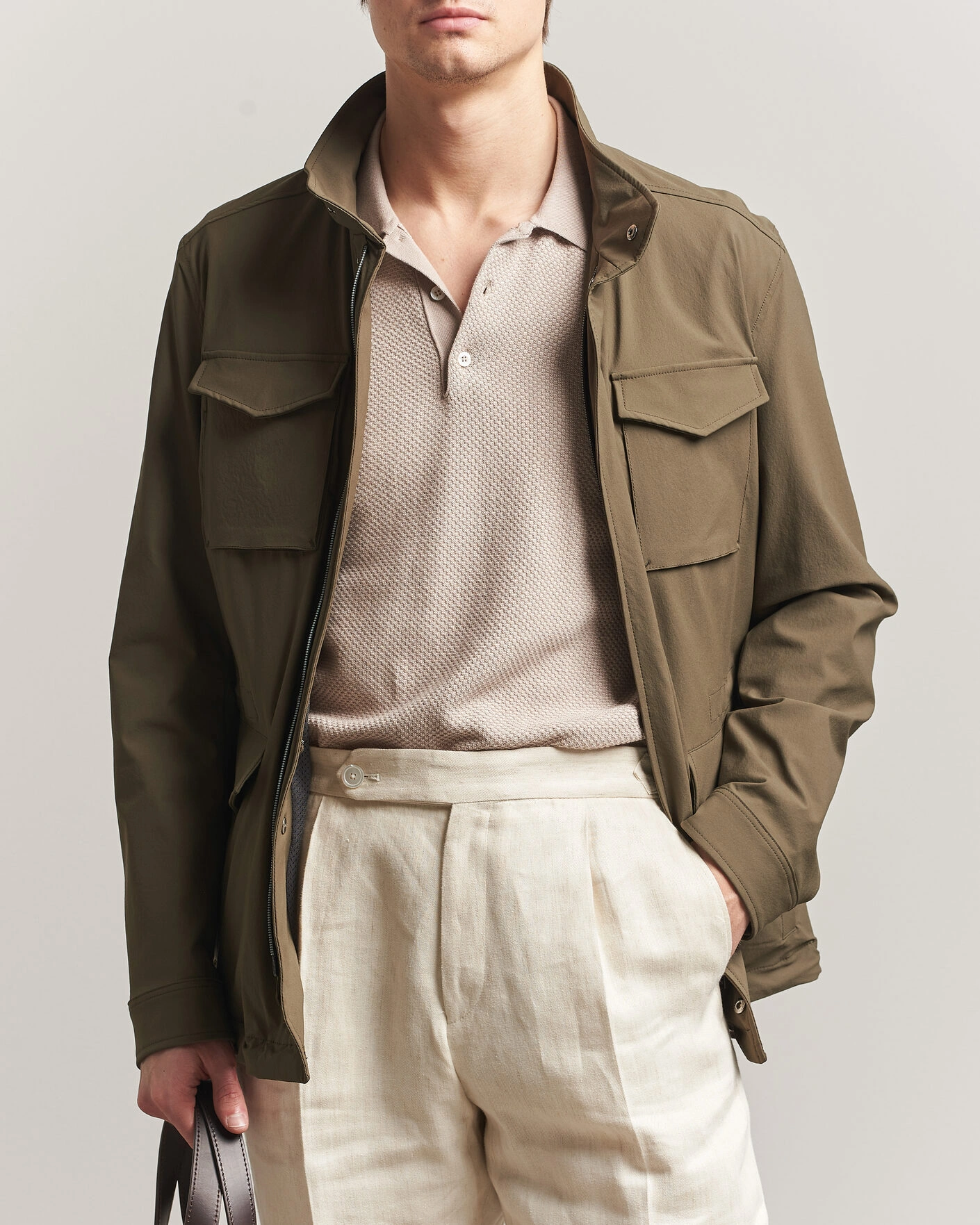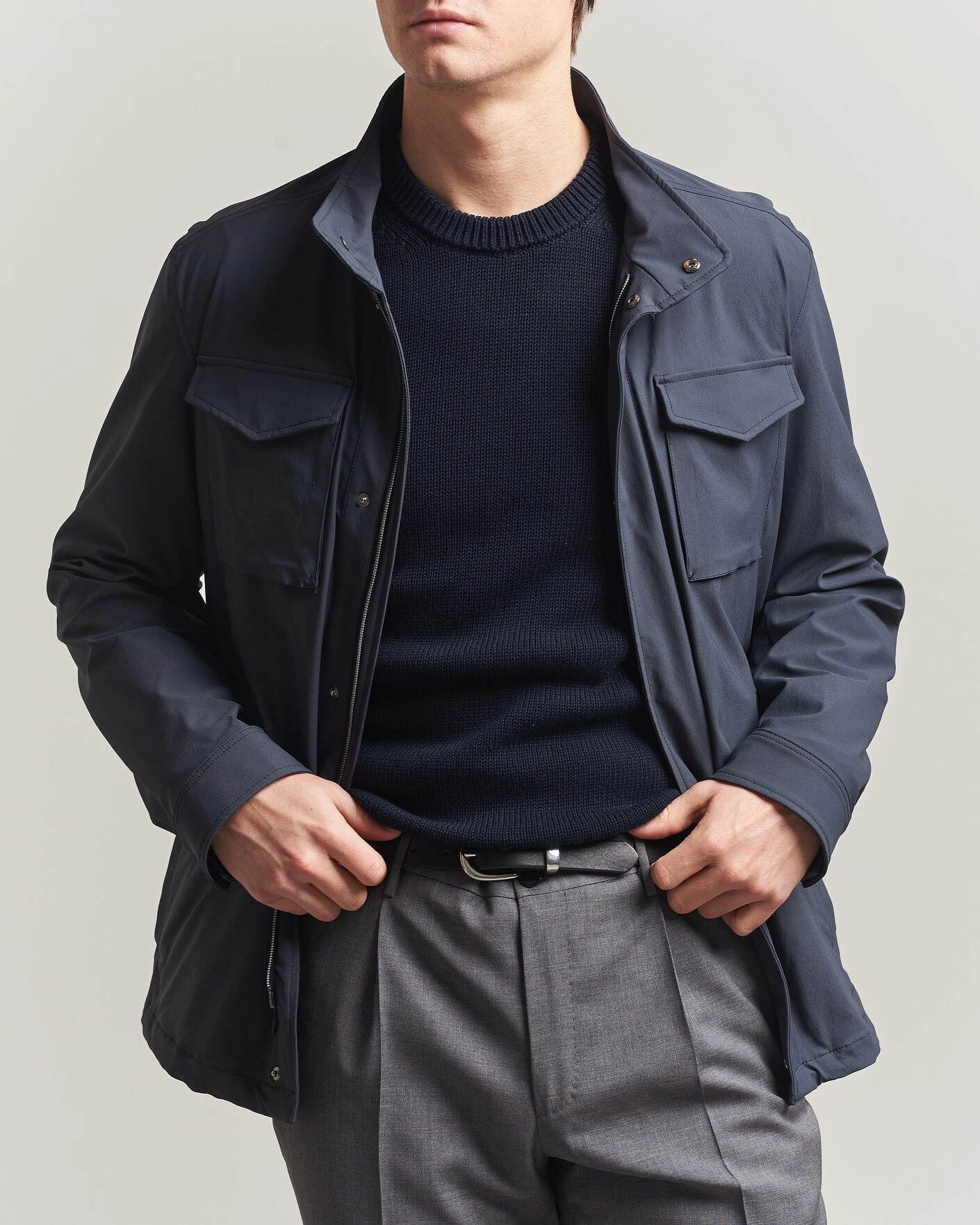 Encerclé par les eaux claires des Alpes du lac Majeur, il semble tout à fait naturel que Herno se spécialise dans la production de tissus imperméables. Ces tissus sont ensuite transformés en vêtements d'extérieur fonctionnels pour l'environnement urbain.