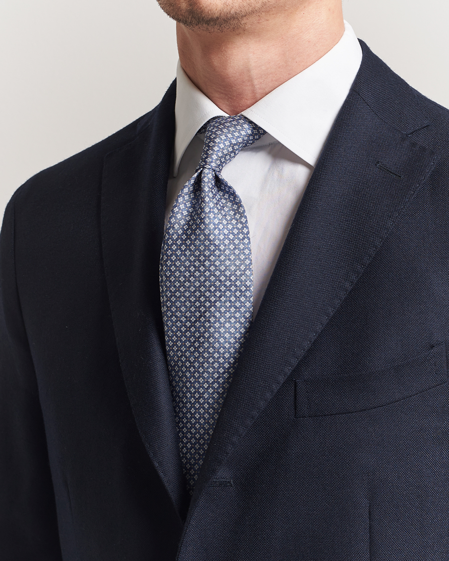 Silk Oxford Printed Micro Flower 8cm Tie Navy