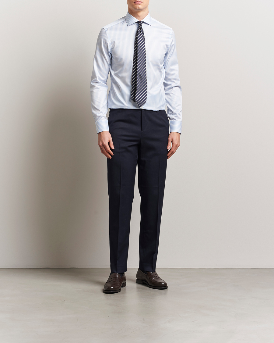 Slim Fit Striped Cotton Shirt Light Blue
