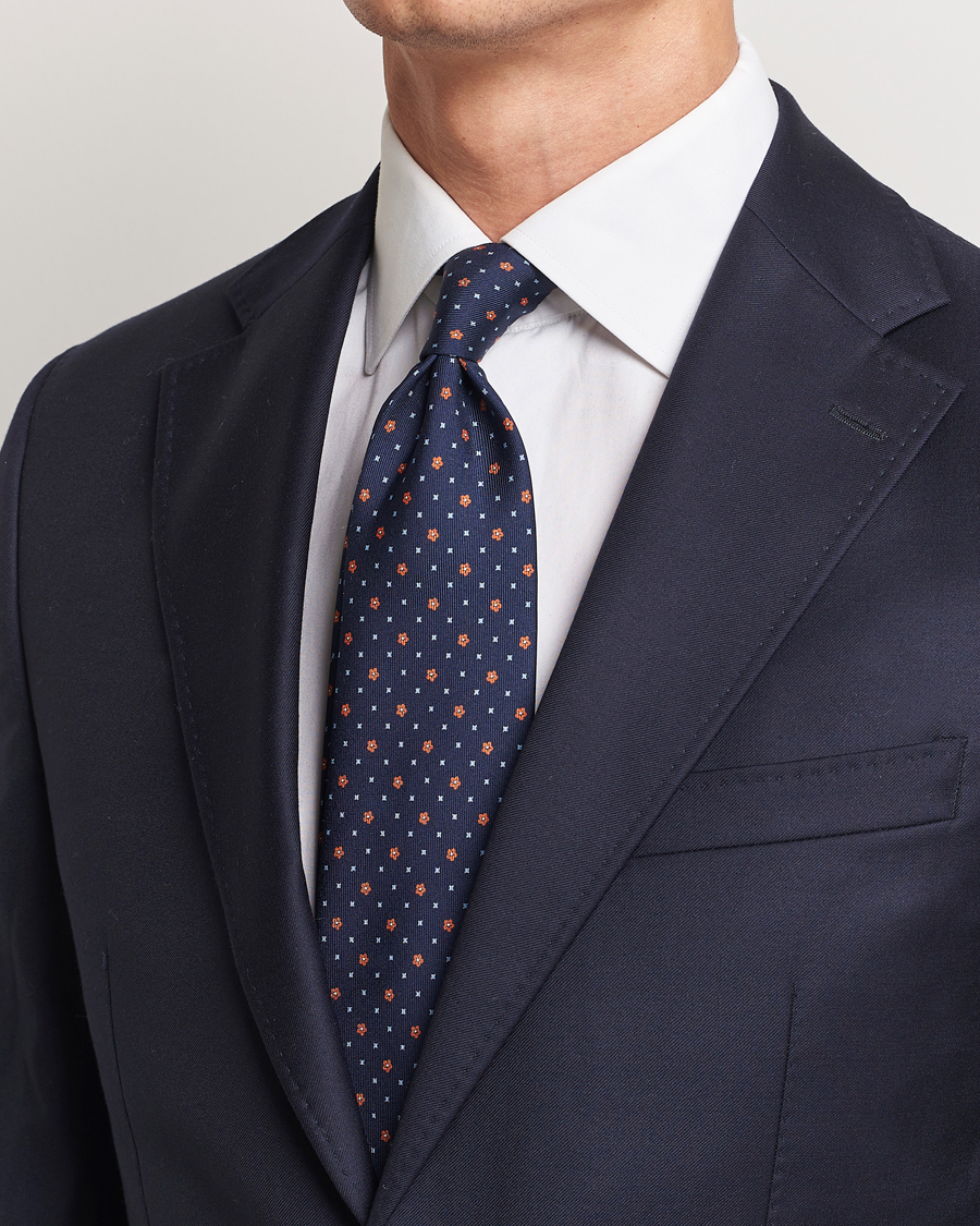 3-Fold Printed Silk Tie Navy/Orange