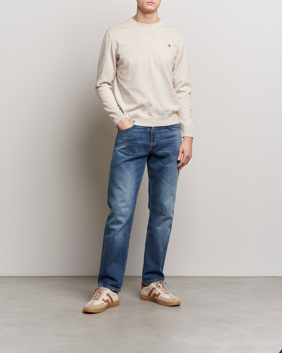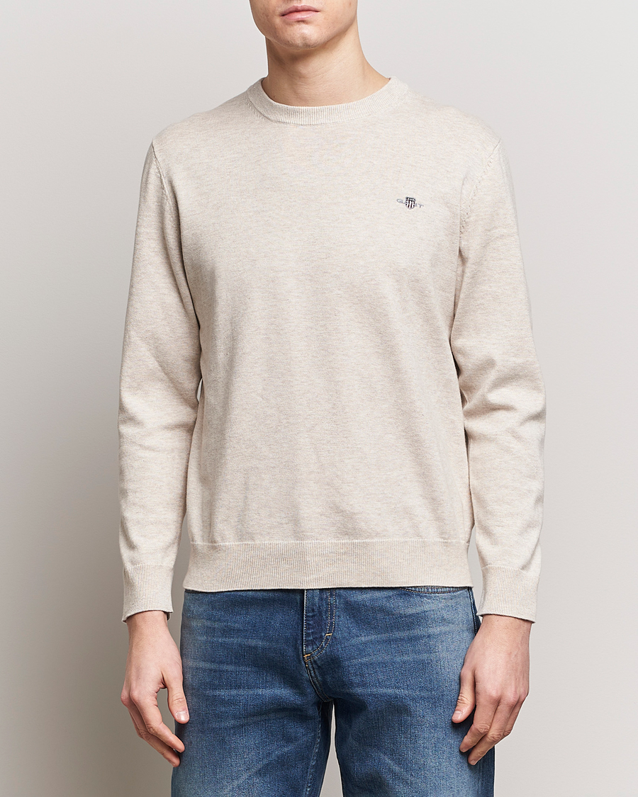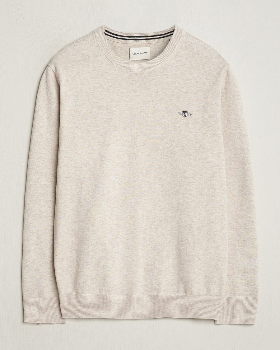 Classic Cotton Crew Neck Light Beige Melange