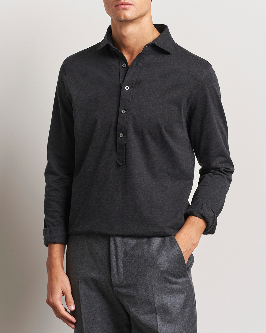 Brushed Cotton Popover Shirt Black