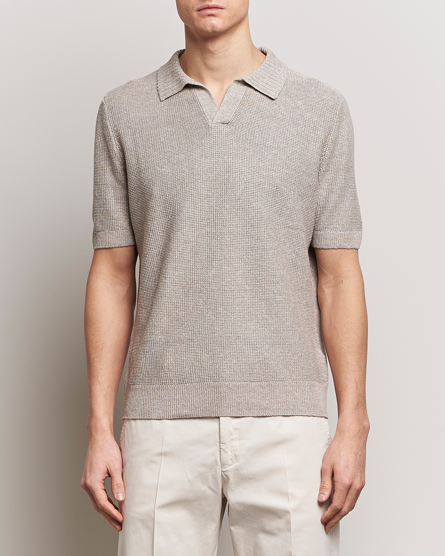 Linen/Cotton Open Collar Polo Beige Melange