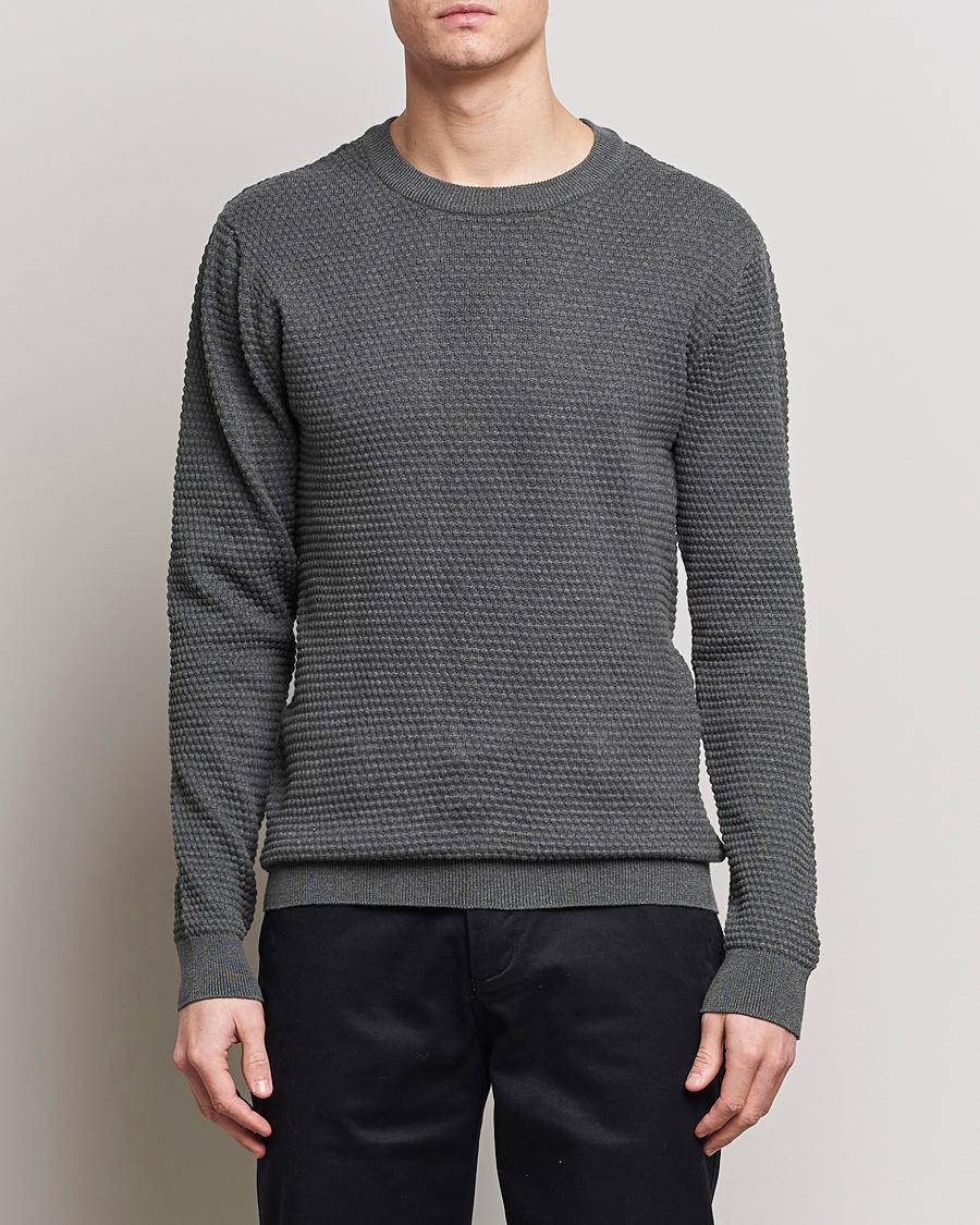Vagn Bubble Knit Cotton Crew Neck Dark Grey Melange