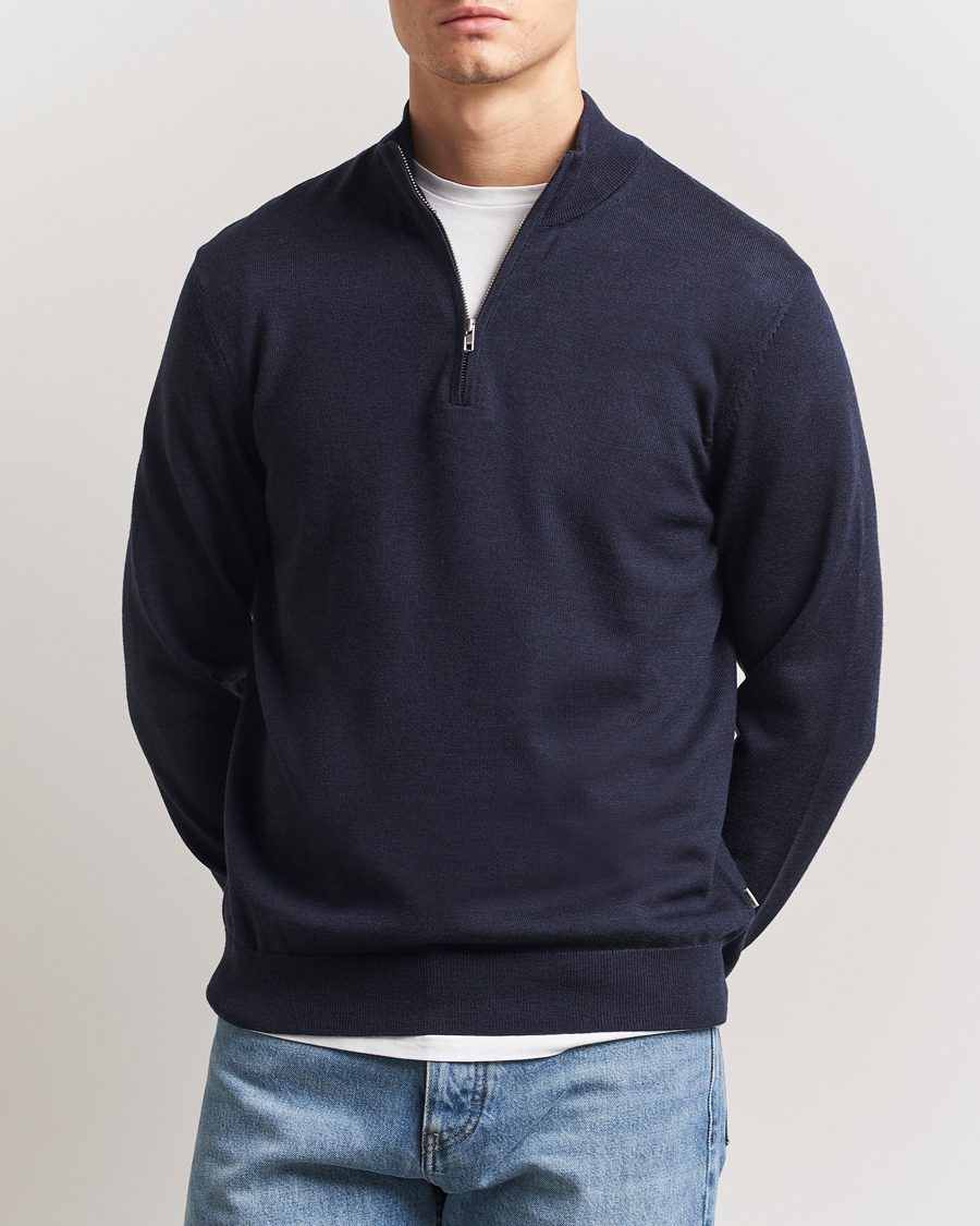 Sergio Merino Knitted Half Zip Navy Melange