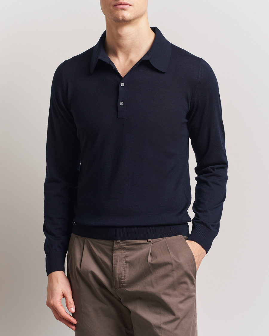 Merino Wool Long Sleeve Polo Navy