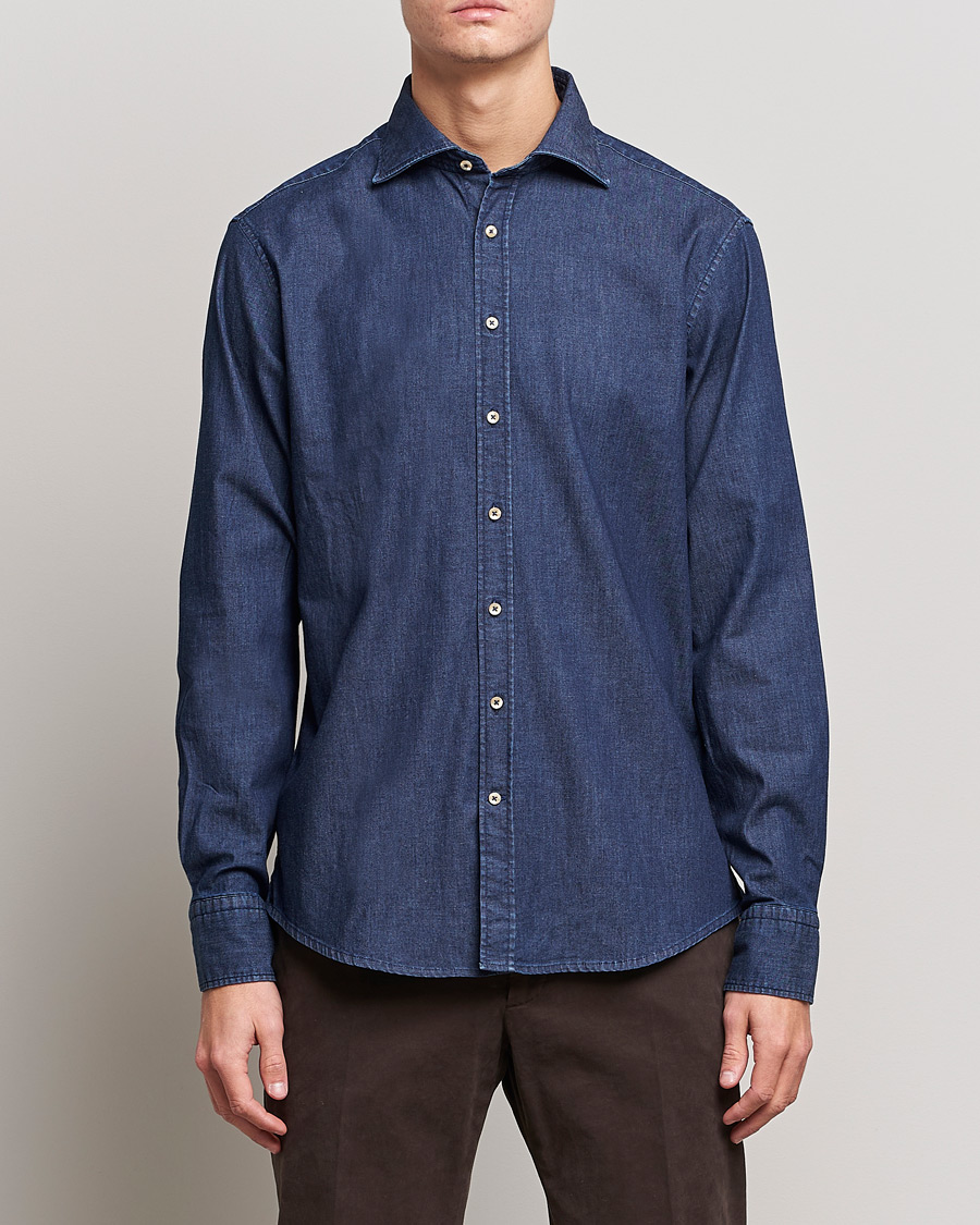Fitted Body Garment Washed Shirt Dark Denim