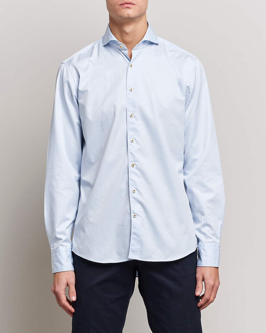 Fitted Body Washed Cotton Plain Shirt Light Blue