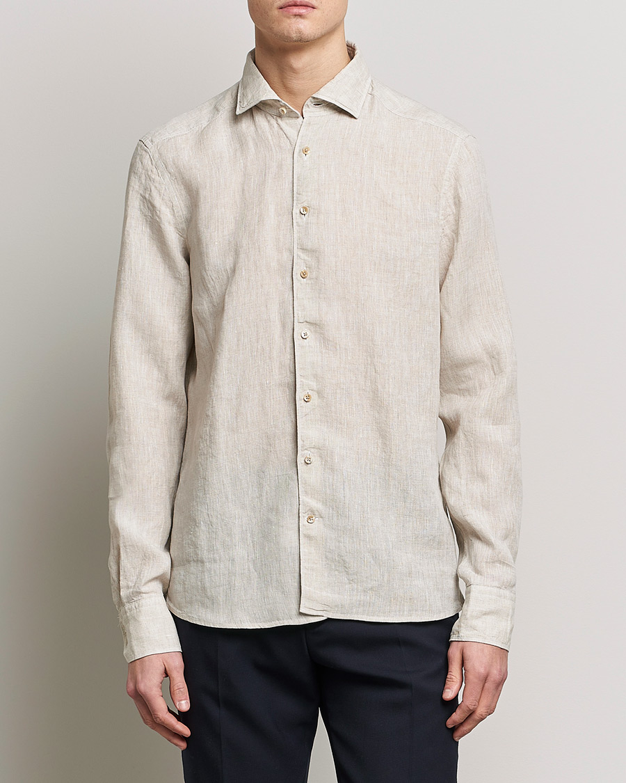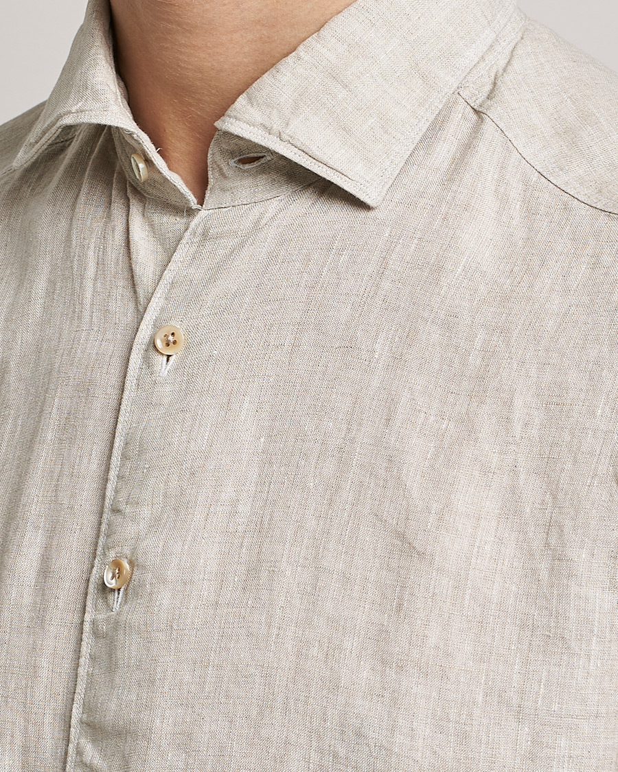 Slimline Cut Away Linen Shirt Beige