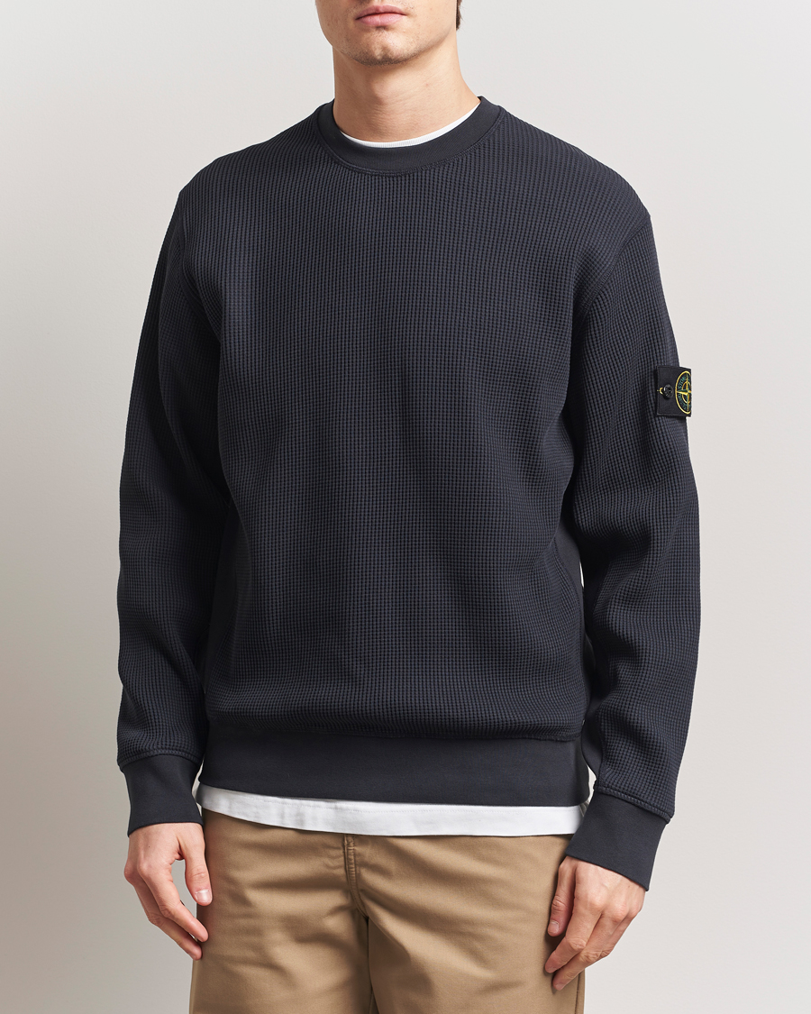Organic Cotton Waffle Fleece Sweatshirt Navy Blue