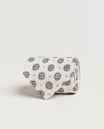 Silk Oxford Printed Flower 8cm Tie Cream