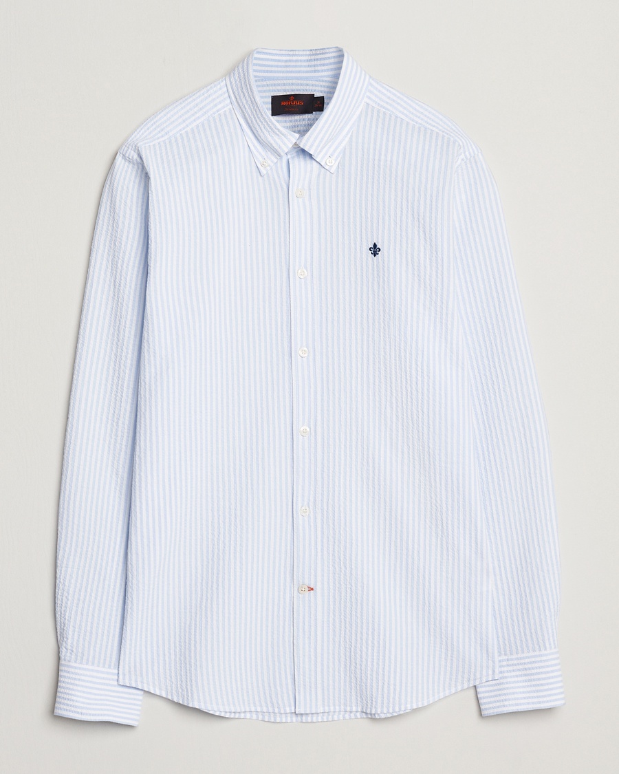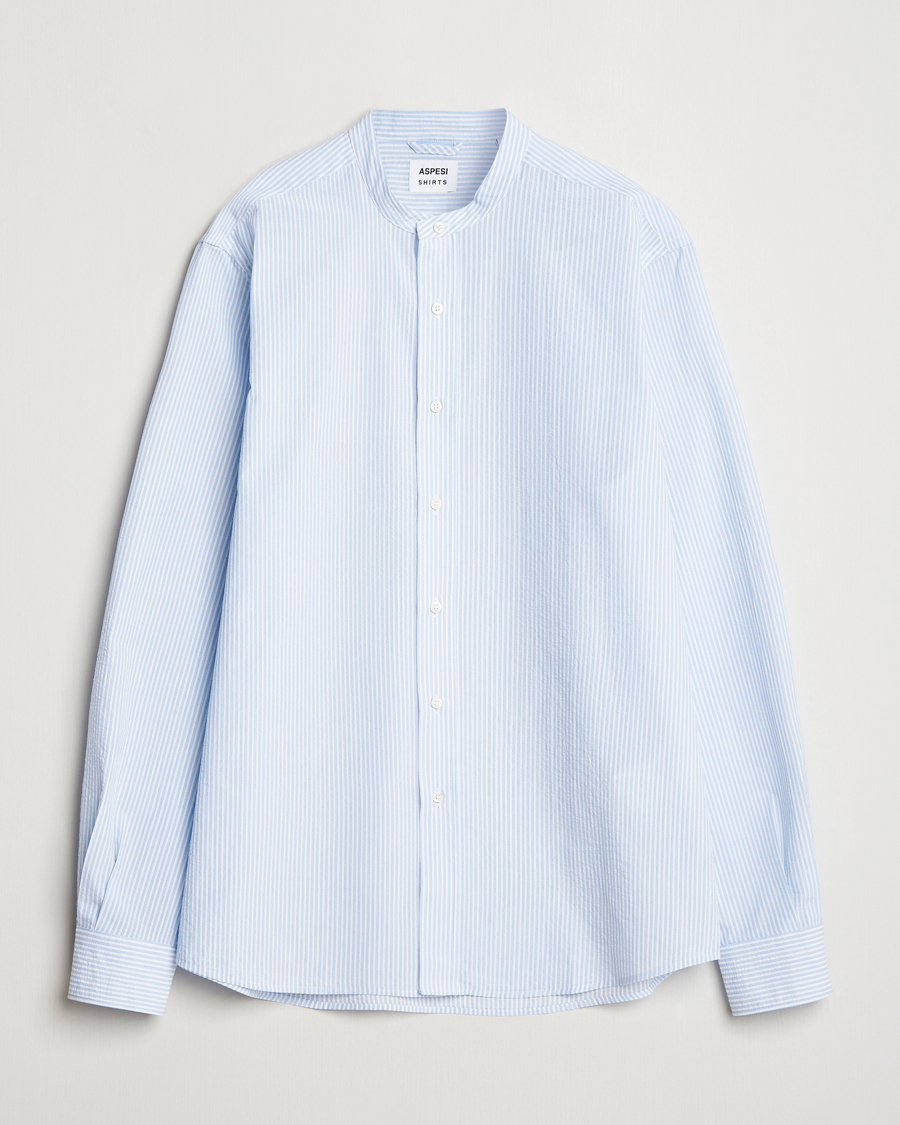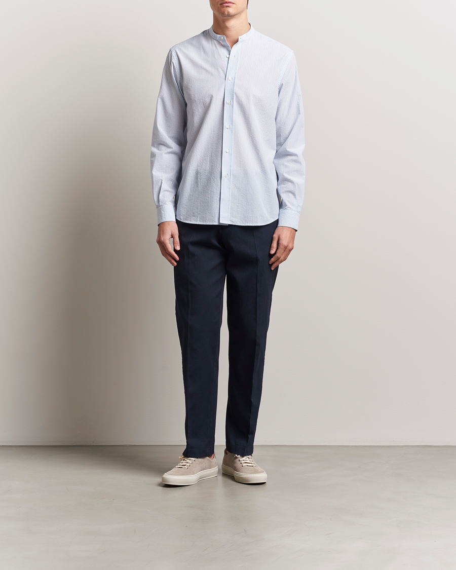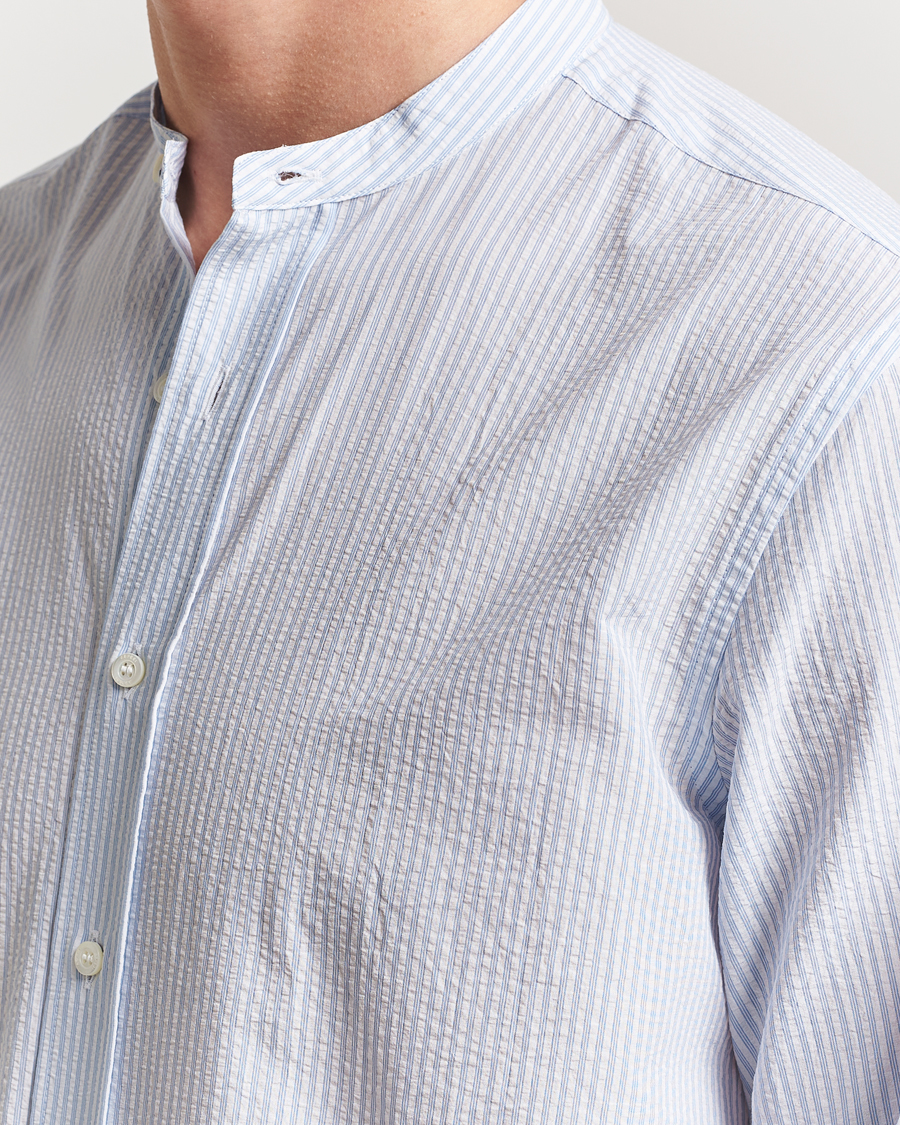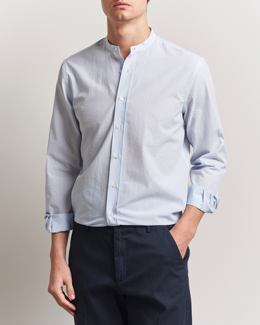 Seersucker Guru Collar Shirt Light Blue