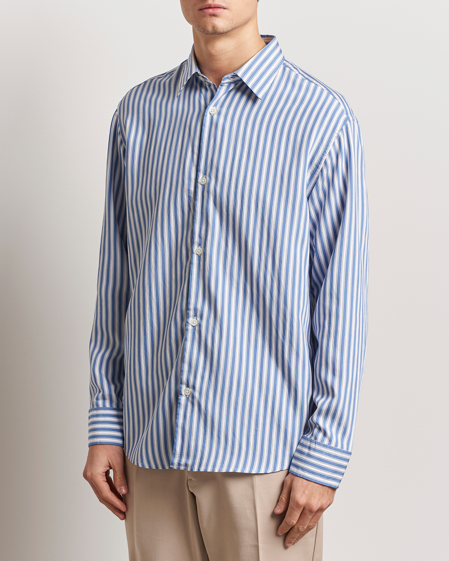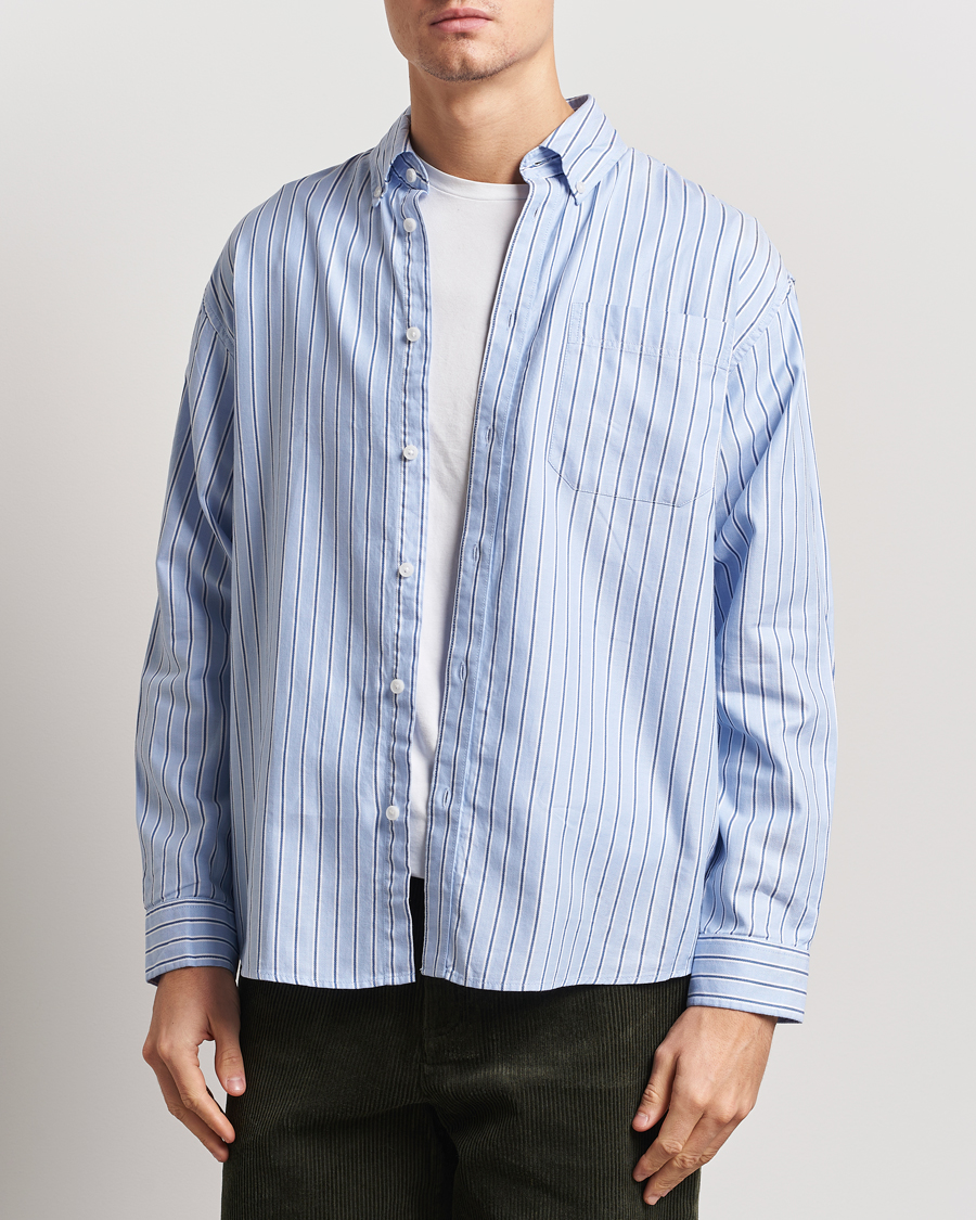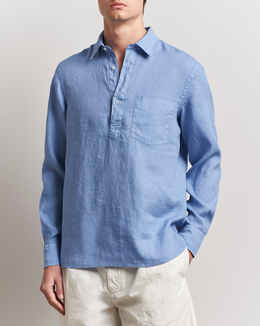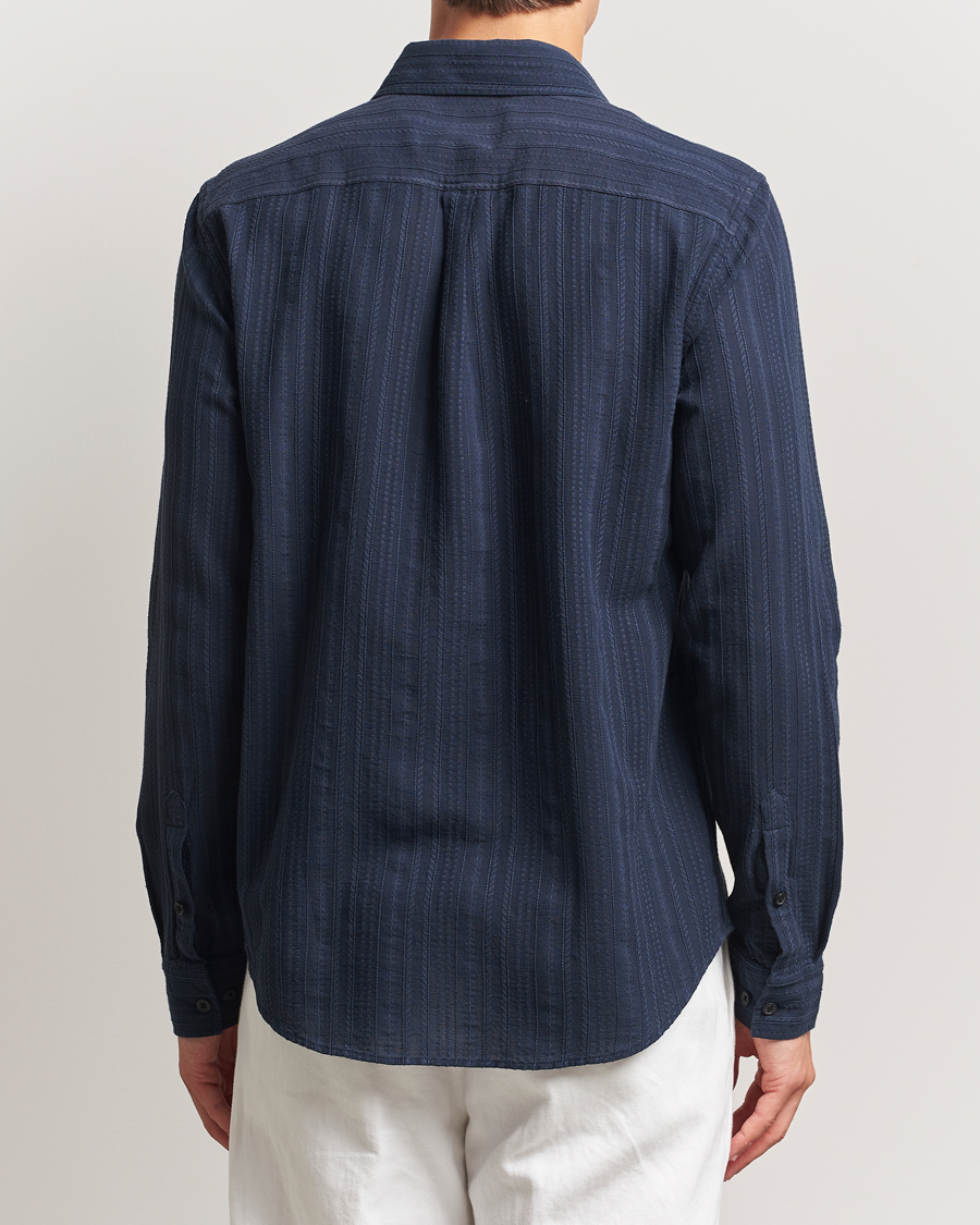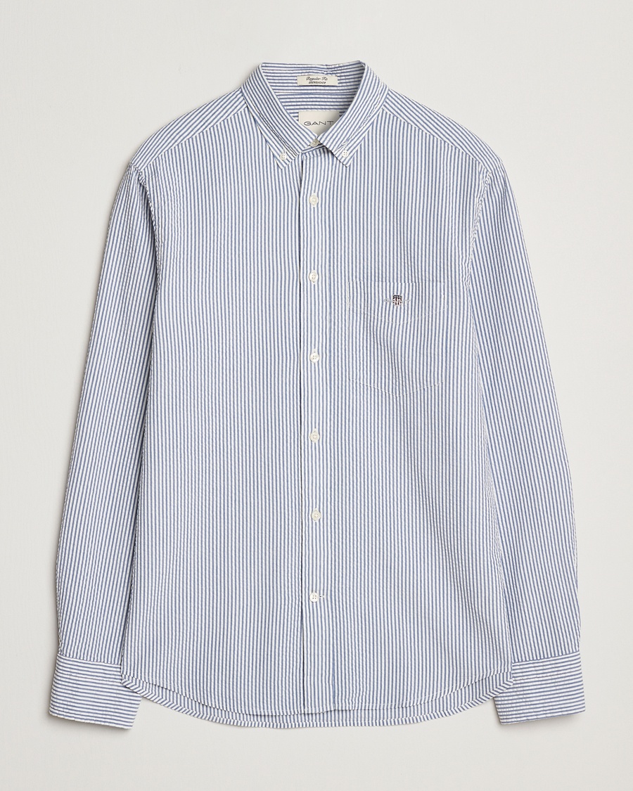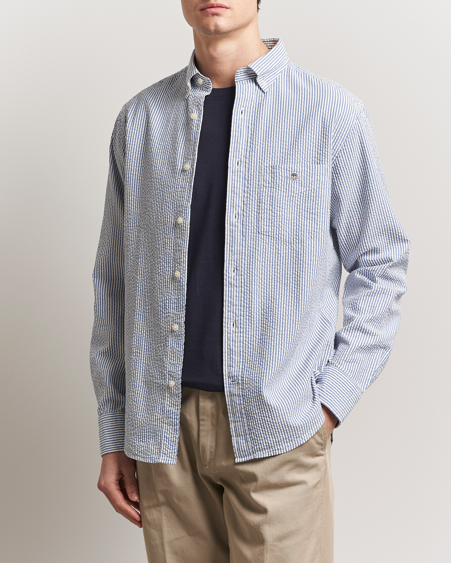 Seersucker Guru Collar Shirt Light Blue