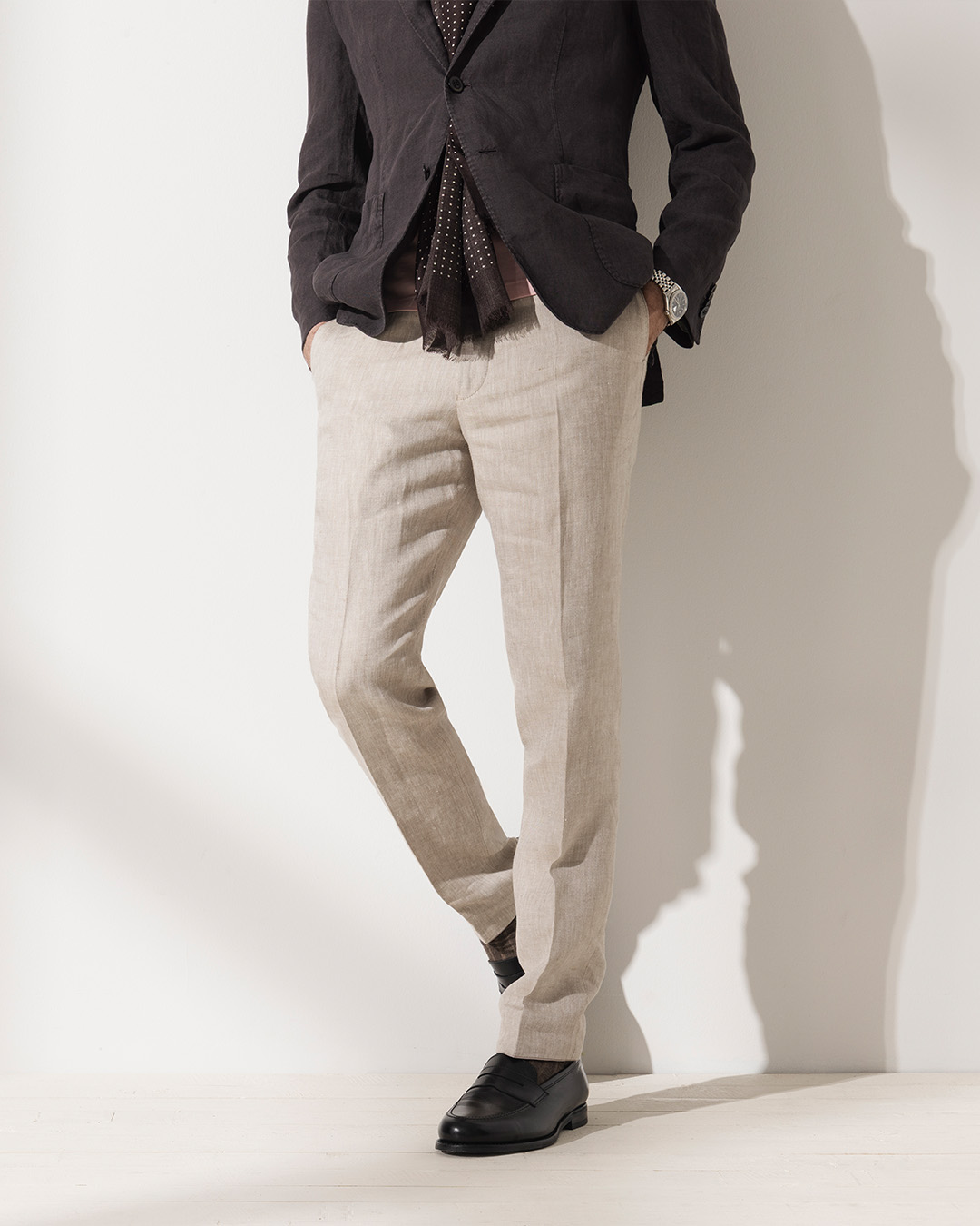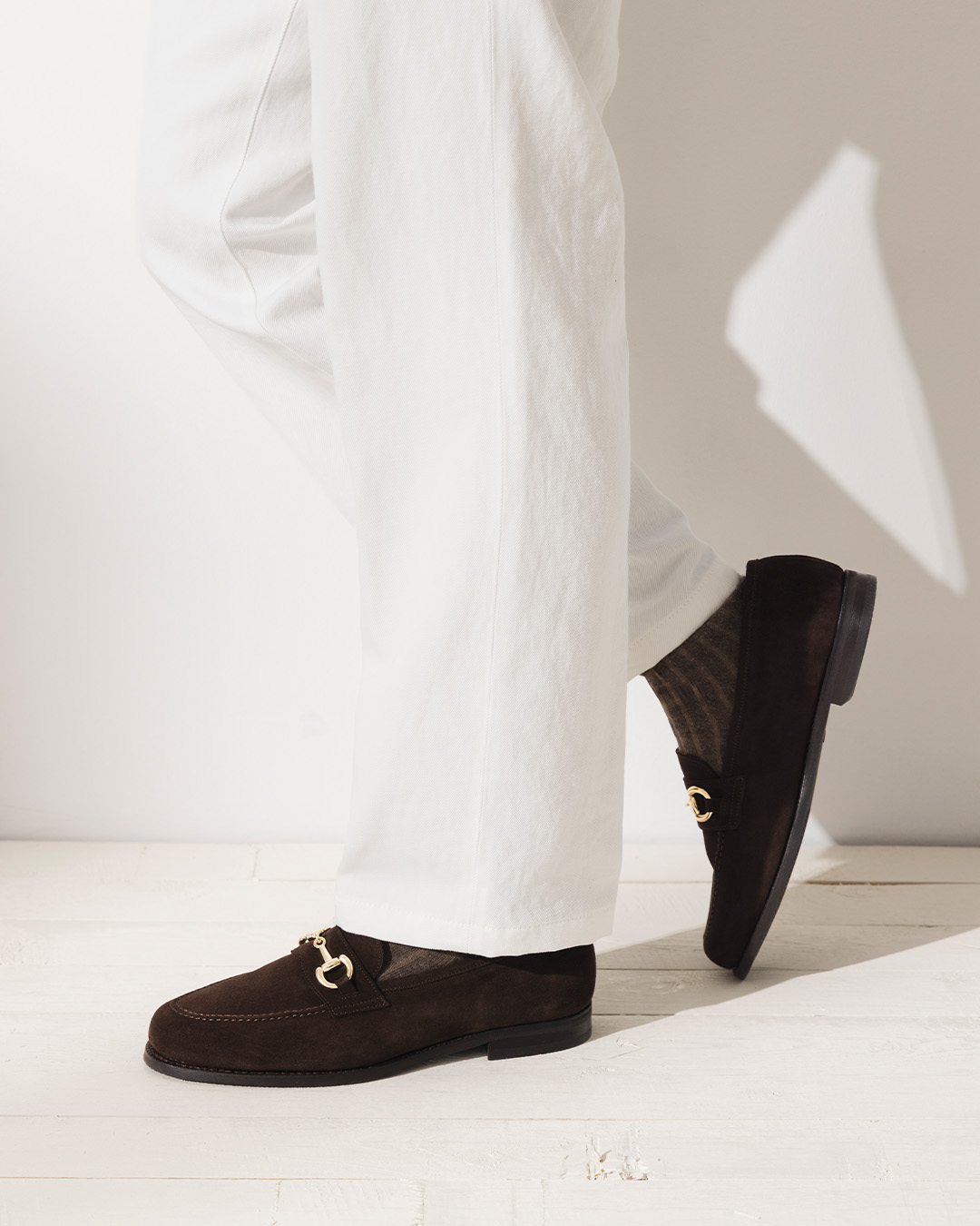 In general, it is good to think that coarser loafers fit well with trousers made from heavier and coarser fabric qualities. Neater loafer models harmonise well with trousers made from thinner and lighter fabric qualities. It is also good to think about the balance between the width of your trouser hem and the loafers you wear. The wider the trousers you wear, the more they will cover your loafers. Wider trousers combine well with slightly coarser loafers. In general, loafers go very well with trousers that have a leg width which allows the shoe's appearance to come into its own. Try your hand at finding the type of loafers that best suit your style identity. They very easily become a favourite in the shoe wardrobe.