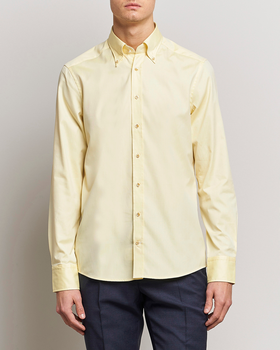 Below we have some tips about shirts whose details, fabric and pattern give different impressions and different degrees of formality. For example, button down collars are best buttoned-up, without a tie. In brief, the larger the collar spread or angle between the collar tabs, the better the shirt lends itself to being buttoned up with a tie. The business shirt often has more toned-down colours and patterns, where a white and light blue garment creates a good base wardrobe. Add an overshirt, denim shirt, flannel shirt and/or corduroy shirt for an even more varied shirt wardrobe.
