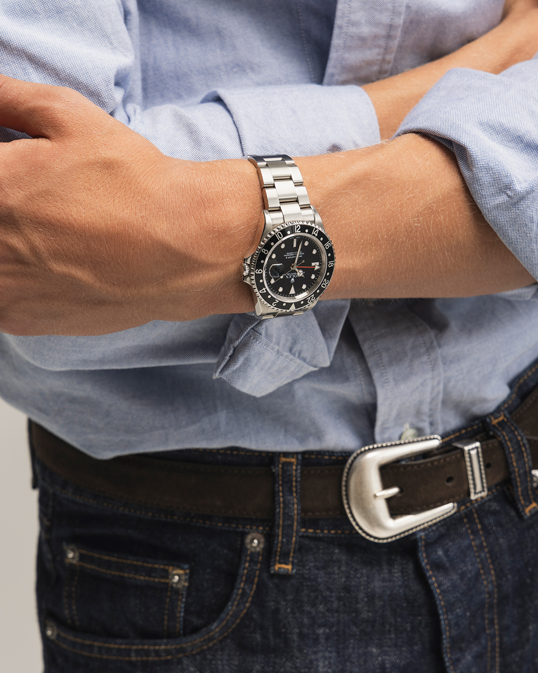 The GMT isn’t a dress watch – and yet it goes with almost everything. On a NATO strap, it’s relaxed. On a Jubilee bracelet: luxuriously old-school. On an Oyster? Clean and confident.