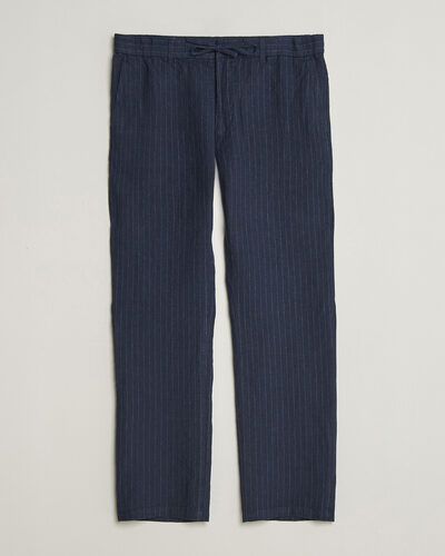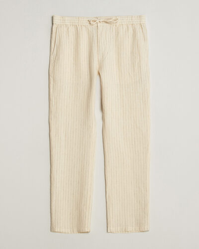 Regular Fit Striped Linen Drawstring Pants Faded Beige