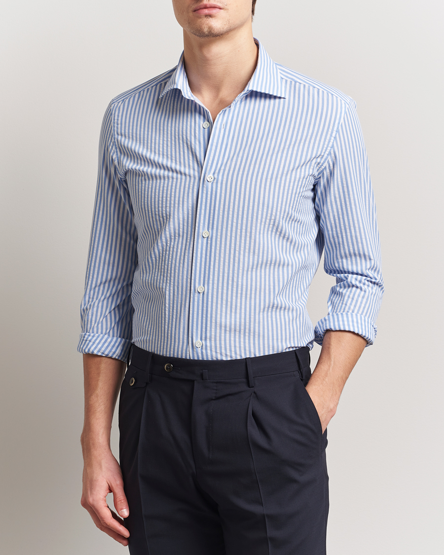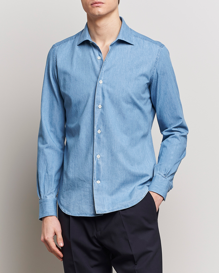 Le fabricant de chemises Mazzarelli de Bari, en Italie, propose des chemises en tissus lavés avec une touche italienne sans équivoque. Chaque chemise est pochoirée, coupée et cousue par l'équipe d'artisans qualifiés et dévoués de l'entreprise, de nombreuses étapes continuant d'être réalisées à la main et tous les matériaux étant choisis avec le plus grand soin.