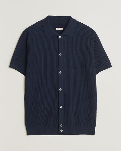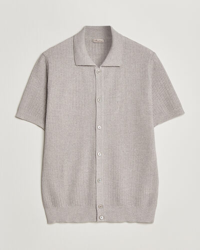 Knitted Buttonthru Merino Polo Shirt Grey