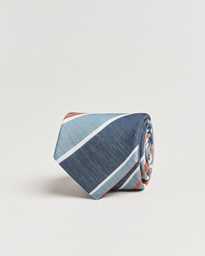 Silk/Linen Mutli Striped Tie Blue